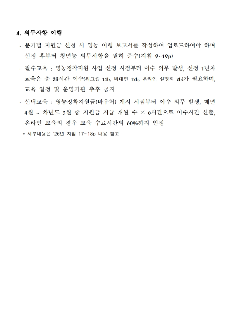 □ 2026년 청년농업인 영농정착지원사업 선정자 관련 안내사항 알림