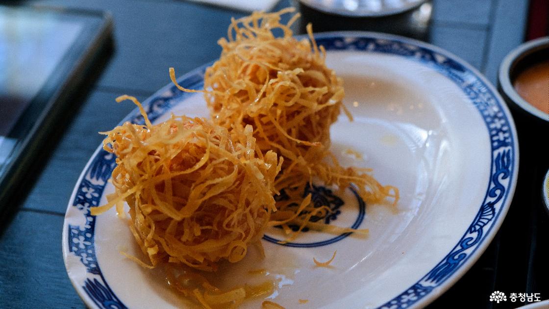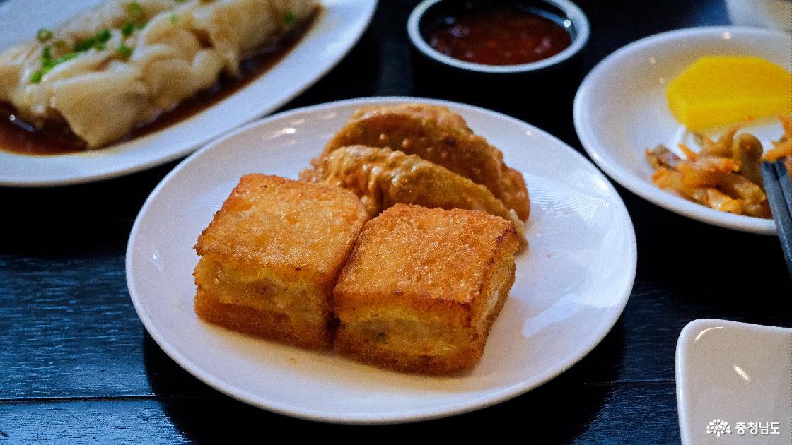 다음은 멘보샤와 군만두가 함께 나왔습니다. 바삭한 식감과 부드러운 속이 잘 어울렸습니다.